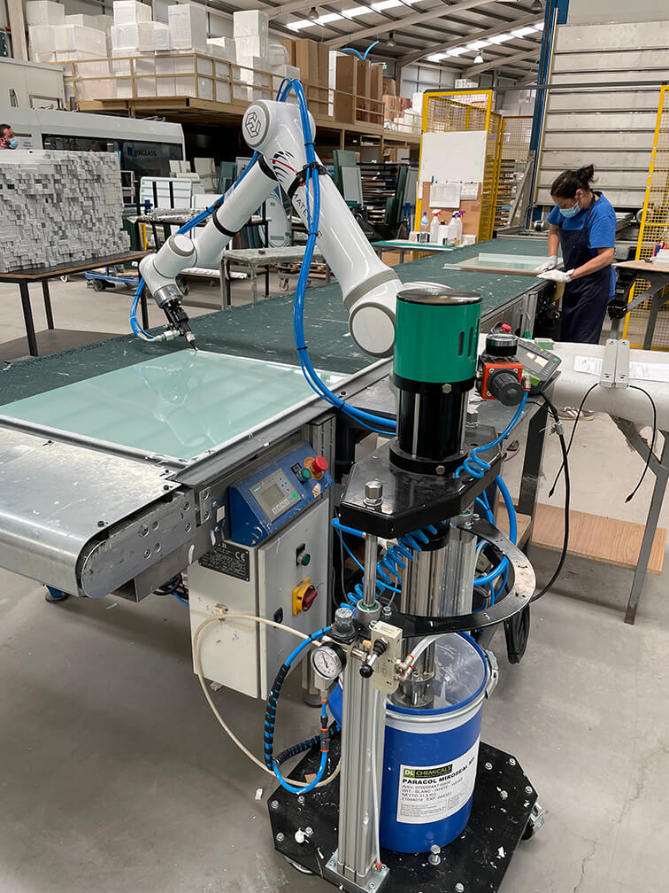 For the production of their beautiful mirrors, the company Biselarte from Portugal uses our Paracol Miroseal MS white. The product in 30 kg barrels is applied to the mirrors by a robot.